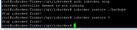 funktionieren, ein Stop von iobroker entsprechend