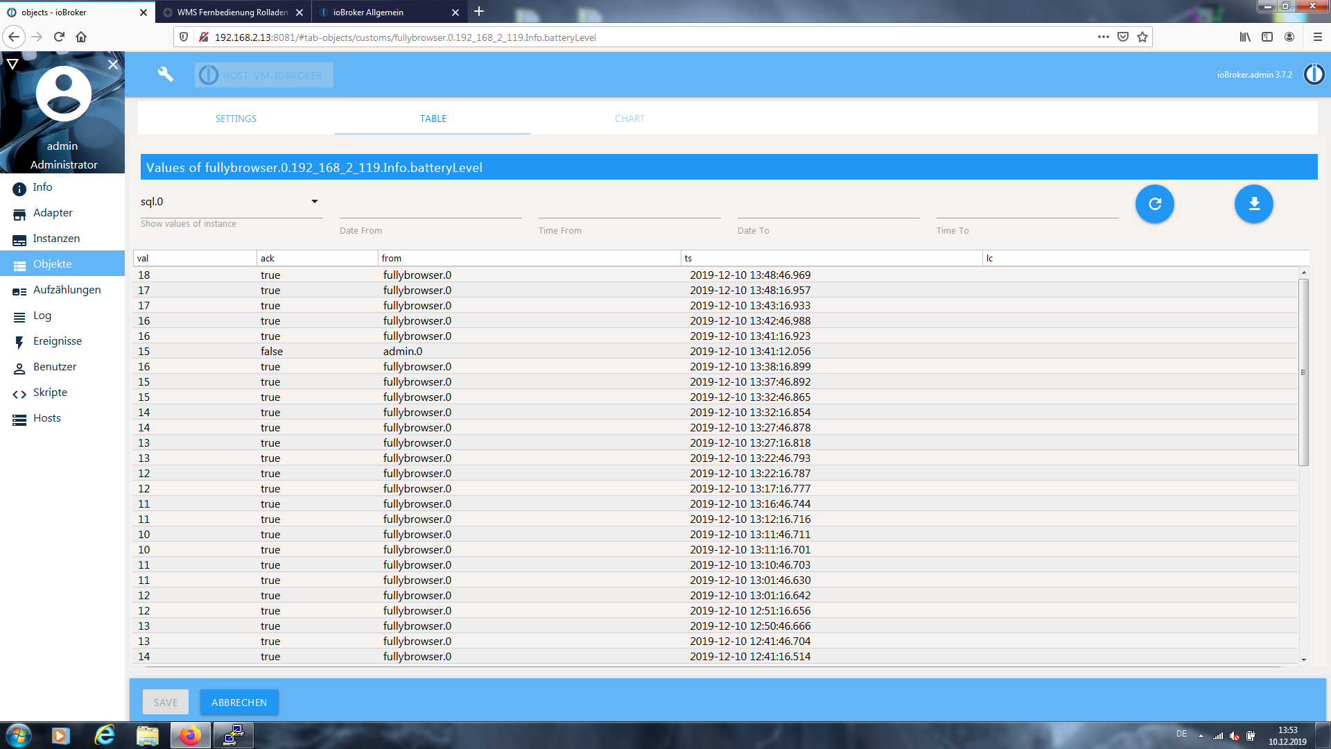 Adapter "admin" : 3.6.12 , installed 3.6.12