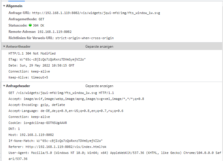 Wenn ich mit meinen Chrome auf die Vis gehe bekomme ich dieses Objekt angezeigt: