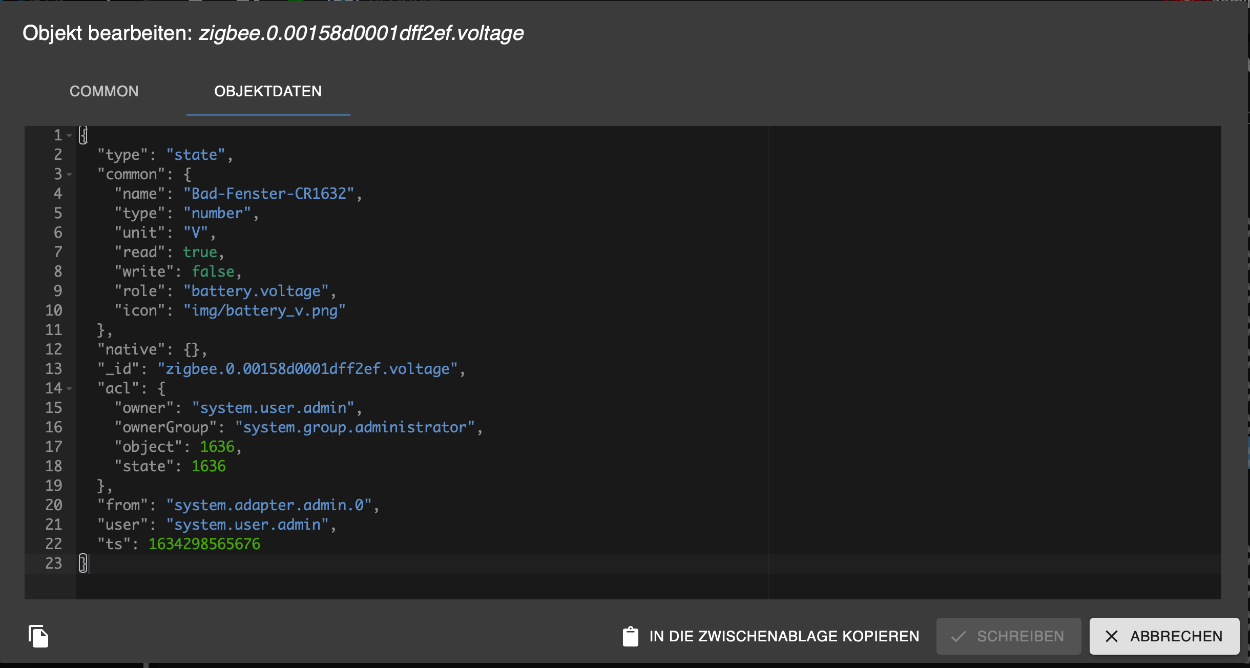 2021-10-13 11:39:33.883 warnen Status System pmessage io.messagebox.system.adapter.telegram.0 {"command":"call","message":{"text":"Hallo","user":"","lang":"de- DE-Standard-B","repeats":"1","users":[],"message":"Hallo"},"from":"system.adapter.javascript.0","_id":95753937 } Zuweisung an konstante Variable.
