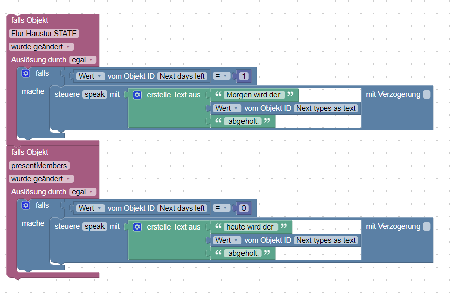Dann braucht es in ioB nur einen Trigger und diese "present Playlist" wird aus wled heraus abgearbeitet. Soll heißen, die einzeln definierten presents werden gemäß playlist nacheinander abgearbeitet ohne jedes present einzeln aus dem ioB script heraus anstoßen zu müssen.