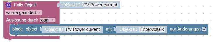 Lass den Trigger-Block weg, denn "binde object" enthält bereits den Trigger. Javascript-Code von "binde object":