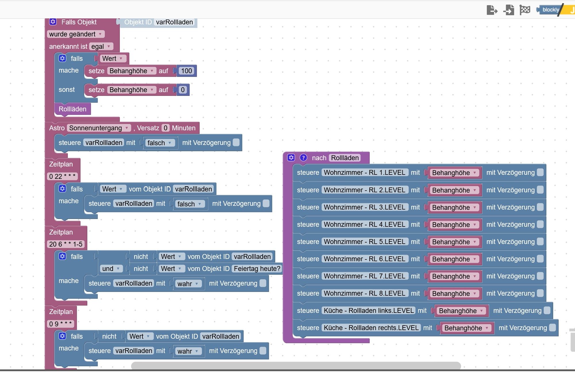 Beobachtet Ignoriert Geplant Angeheftet Gesperrt Verschoben blockly climate ventilation