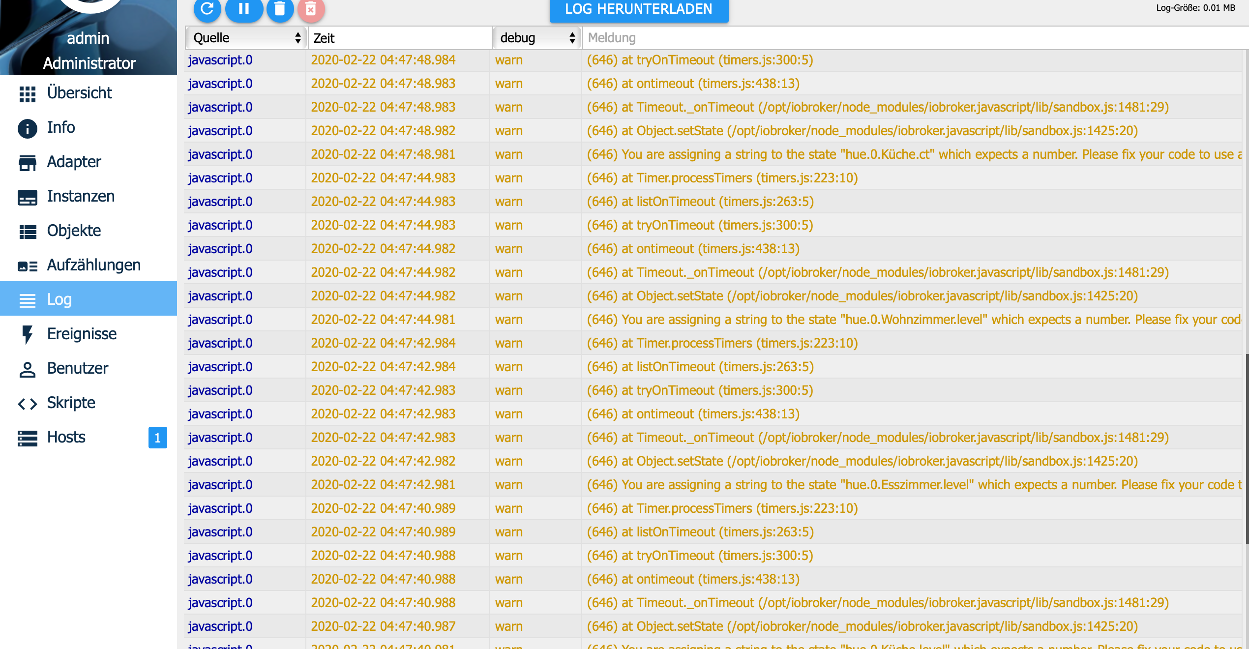 Warn hinweise in Log von Blockly/Blockly geht nicht richtig