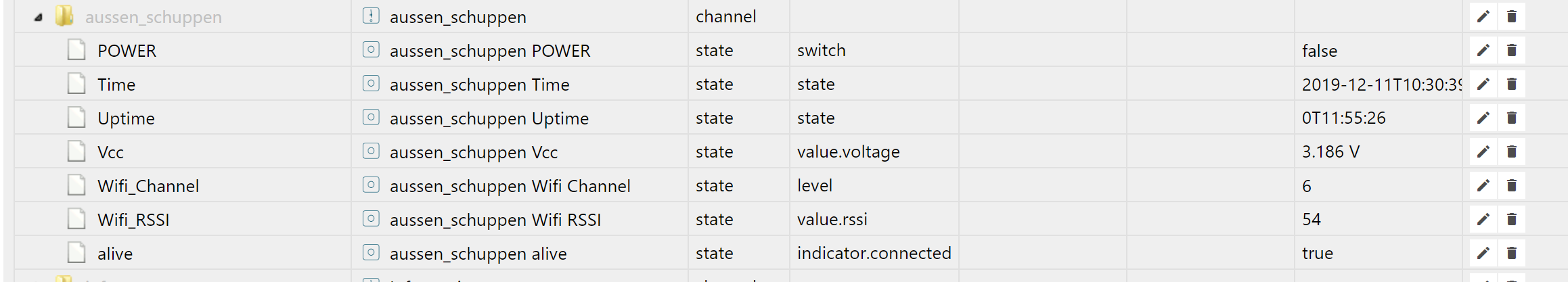 Die 12 Datenpunkte "0_userdata.0.iomodul.input1 .. 12" vom Typ "Logikwert" müssen vorher erzeugt werden.