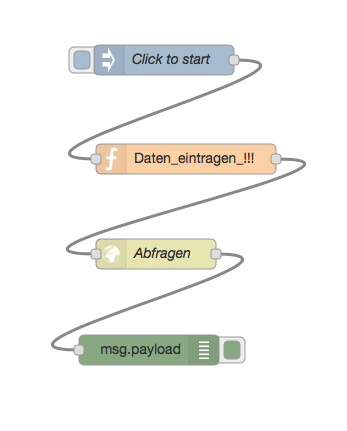 [{"id":"be361ad9.41c9e8","type":"inject","z":"a1e84694.5e17b8","name":"Click to start","topic":"","payload":"","payloadType":"none","repeat":"","crontab":"","once":false,"x":366,"y":125,"wires":[["d889367b.2776c8"]]},{"id":"50b15200.af4eb","type":"debug","z":"a1e84694.5e17b8","name":"","active":true,"console":"false","complete":"false","x":351,"y":415,"wires":[]},{"id":"d889367b.2776c8","type":"function","z":"a1e84694.5e17b8","name":"Daten_eintragen_!!!","func":"// Hier die Daten aus z.B. Google-Maps eintragen\n\nvar LONG = "0.123456";\nvar LAT = "5.123456";\n\n\n// Hier die festen Angaben hinterlegen\nvar SPRIT = "diesel";\nvar APIKEY = "xxxxxxxx-xxxx-xxxx-xxxx-xxxxxxxxxxxx";\n\n\nvar Ausgabe = "https://creativecommons.tankerkoenig.de/json/list.php?rad=1&sort=price&type=" + SPRIT + "&apikey=" + APIKEY + "&lat=" + LAT + "&lng=" + LONG;\nmsg.url = Ausgabe;\n\nreturn msg;","outputs":1,"noerr":0,"x":388,"y":224,"wires":[["958df4ce.6a7208"]]},{"id":"958df4ce.6a7208","type":"http request","z":"a1e84694.5e17b8","name":"Abfragen","method":"GET","ret":"txt","url":"","x":358,"y":319,"wires":[["50b15200.af4eb"]]}] Und hier der Flow, der die Daten zu mehreren Tankstellen in einem Request abholt >! ``` `[{"id":"e96ea6a0.169158","type":"inject","z":"a1e84694.5e17b8","name":"Abfrage Spritpreise","topic":"","payload":"","payloadType":"date","repeat":"300","crontab":"","once":true,"x":142.85714721679688,"y":169.28571701049805,"wires":[["26328183.d9cd7e","7d9cc9c4.826338"]]},{"id":"84afa121.7b506","type":"function","z":"a1e84694.5e17b8","name":"Wuppertal, Dahlerstrasse, Shell","func":"msg.config.id1 =\"b0691704-eedc-41b4-bec1-537df534292f\";\nmsg.config.name1 = \"Wuppertal_Dahlerstrasse_Shell\";\n\n\n\nmsg.payload = msg.payload + msg.config.id1;\nmsg.payload = msg.payload + \"%22%2C%22\"\nreturn msg;\n","outputs":1,"noerr":0,"x":479.8571472167969,"y":235.28571701049805,"wires":[["3dfdd83.fc20228"]]},{"id":"3dfdd83.fc20228","type":"function","z":"a1e84694.5e17b8","name":"Schwelm, B7, Esso","func":"msg.config.id2 =\"5eece80c-22f1-4852-8615-080570a40a52\";\nmsg.config.name2 = \"Schwelm_B7_Esso\";\n\nmsg.payload = msg.payload + msg.config.id2;\nmsg.payload = msg.payload + \"%22%2C%22\"\n\nreturn msg;\n","outputs":1,"noerr":0,"x":442,"y":284.0000114440918,"wires":[["44213a36.bbdec4"]]},{"id":"44213a36.bbdec4","type":"function","z":"a1e84694.5e17b8","name":"Wuppertal, ObereLicht, Shell","func":"msg.config.id3 =\"6901c02a-ff28-4233-9d01-81cb3ce483b2\";\nmsg.config.name3 = \"Wuppertal_ObereLicht_Shell\";\n\nmsg.payload = msg.payload + msg.config.id3;\nmsg.payload = msg.payload + \"%22%2C%22\"\n\nreturn msg;\n","outputs":1,"noerr":0,"x":469.42864990234375,"y":337.1428642272949,"wires":[["e4f5b4ae.1b0a48"]]},{"id":"e4f5b4ae.1b0a48","type":"function","z":"a1e84694.5e17b8","name":"Wuppertal, ObereLicht, Star","func":"msg.config.id4 =\"005056ba-7cb6-1ed2-bceb-7e4efd3f4d2a\";\nmsg.config.name4 = \"Wuppertal_ObereLicht_Star\";\n\nmsg.payload = msg.payload + msg.config.id4;\nmsg.payload = msg.payload + \"%22%2C%22\"\n\nreturn msg;\n","outputs":1,"noerr":0,"x":470.42864990234375,"y":388.1428642272949,"wires":[["44640a30.bb9bf4"]]},{"id":"44640a30.bb9bf4","type":"function","z":"a1e84694.5e17b8","name":"Gevelsberg, B7, Jet","func":"msg.config.id5 =\"fc4f8d7b-3df1-477a-81d6-167351666e2d\";\nmsg.config.name5 = \"Gevelsberg_B7_Jet\";\n\nmsg.payload = msg.payload + msg.config.id5;\nmsg.payload = msg.payload + \"%22%2C%22\"\n\nreturn msg;\n","outputs":1,"noerr":0,"x":448.8571472167969,"y":443.28571701049805,"wires":[["de4973cf.21b69"]]},{"id":"de4973cf.21b69","type":"function","z":"a1e84694.5e17b8","name":"Ennepetal, Lohennocken, Oil!","func":"msg.config.id6 =\"0b9a8e89-baa4-4b12-bbbd-cf7225c55b69\";\nmsg.config.name6 = \"Ennepetal_Lohen_Oil\";\n\nmsg.payload = msg.payload + msg.config.id6;\n\nreturn msg;\n","outputs":1,"noerr":0,"x":475.8571472167969,"y":503.28571701049805,"wires":[["7a0eb70c.85f148"]]},{"id":"26328183.d9cd7e","type":"function","z":"a1e84694.5e17b8","name":"Ermittlungs_Zeitpunkt","func":"msg = {};\n\n\nfunction addZero(i) {\n if (i < 10) {\n i = \"0\" + i;\n }\n return i;\n}\n\n\nvar currentdate = new Date(); \nvar h = addZero(currentdate.getHours());\nvar m = addZero(currentdate.getMinutes());\nvar s = addZero(currentdate.getSeconds());\n\n\nvar datetime = h + \":\" + m + \":\" + s;\n\nmsg.payload = datetime;\nreturn msg;\n","outputs":1,"noerr":0,"x":417.8571472167969,"y":900.285717010498,"wires":[["5a184aef.a5e7b4"]]},{"id":"5a184aef.a5e7b4","type":"ioBroker out","z":"a1e84694.5e17b8","name":"","topic":"node-red.0.Tankstelle.Statusuhrzeit","ack":"true","autoCreate":"true","x":1509.8571472167969,"y":895.285717010498,"wires":[]},{"id":"7d9cc9c4.826338","type":"function","z":"a1e84694.5e17b8","name":"Basis","func":"msg.config = msg.config || {};\nmsg.config.apiKey = \"xxxxxxxx-xxxx-xxxx-xxxx-xxxxxxxxxxxx\";\nmsg.payload = \"https://creativecommons.tankerkoenig.de/json/prices.php?ids=%5B%22\";\nreturn msg;\n","outputs":1,"noerr":0,"x":397.8571472167969,"y":168.28571701049805,"wires":[["84afa121.7b506"]]},{"id":"7a0eb70c.85f148","type":"function","z":"a1e84694.5e17b8","name":"URL vervollständigen","func":"msg.payload = msg.payload + \"%22%5D&apikey=\";\nmsg.payload = msg.payload + msg.config.apiKey;\nmsg.url = msg.payload;\nreturn msg;\n","outputs":1,"noerr":0,"x":455.8571472167969,"y":593.285717010498,"wires":[["e1656a8a.1e9a98"]]},{"id":"e1656a8a.1e9a98","type":"http request","z":"a1e84694.5e17b8","name":"Details abfragen","method":"GET","ret":"obj","url":"","x":428.8571472167969,"y":689.285717010498,"wires":[["76493c6b.89b6c4"]]},{"id":"76493c6b.89b6c4","type":"function","z":"a1e84694.5e17b8","name":"Outputs ansteuern","func":"var output = [];\nfor(i=0; i<5; i++){output.push(msg);};\n\nreturn output;\n","outputs":"1","noerr":0,"x":634.8571472167969,"y":689.285717010498,"wires":[["be730dba.418cf","ab1189d9.54ee78","4e35639e.b1ca9c","78bab061.87455","f24e56fe.0db1a8","b0970949.4f68f8","271ec18d.d8e13e","cbc3dfc