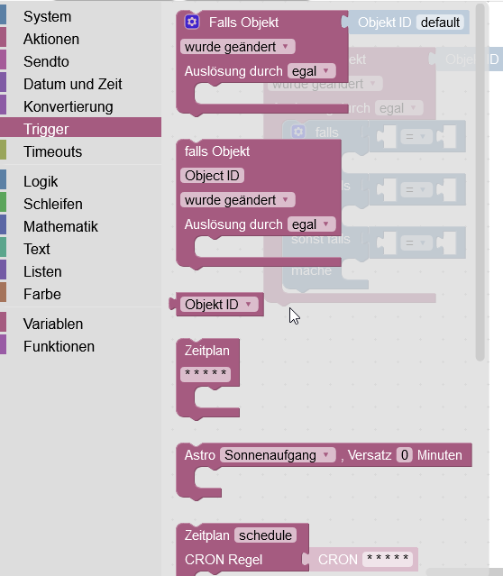deswegen ist dieser Baustein auch in der Rubrik Trigger zu finden, und zwar als Baustein mit Pulldown für alles mögliche was der Trigger bietet, standardmäßig aufObjectIDeingestellt -
