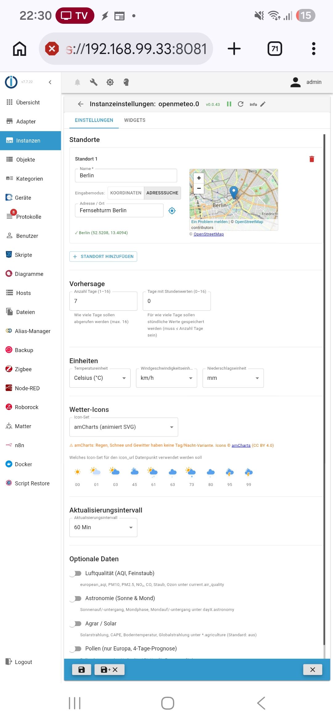 Adapter "admin" : 7.7.22 , installed 7.7.22