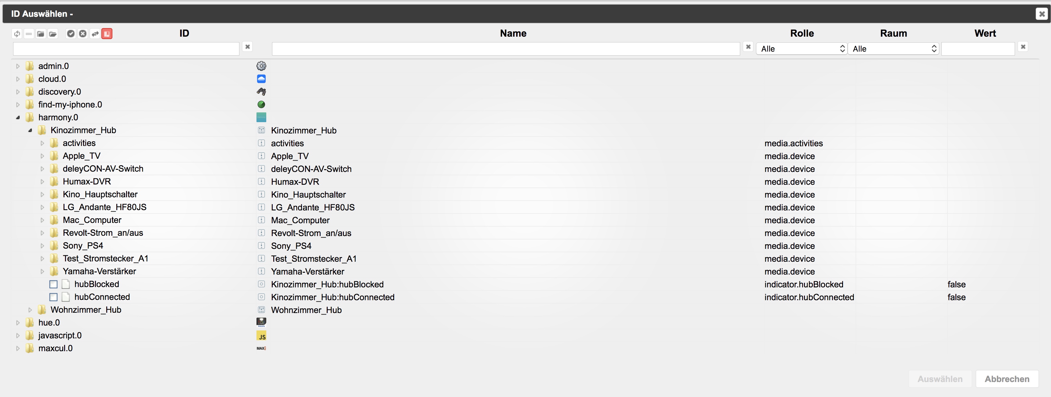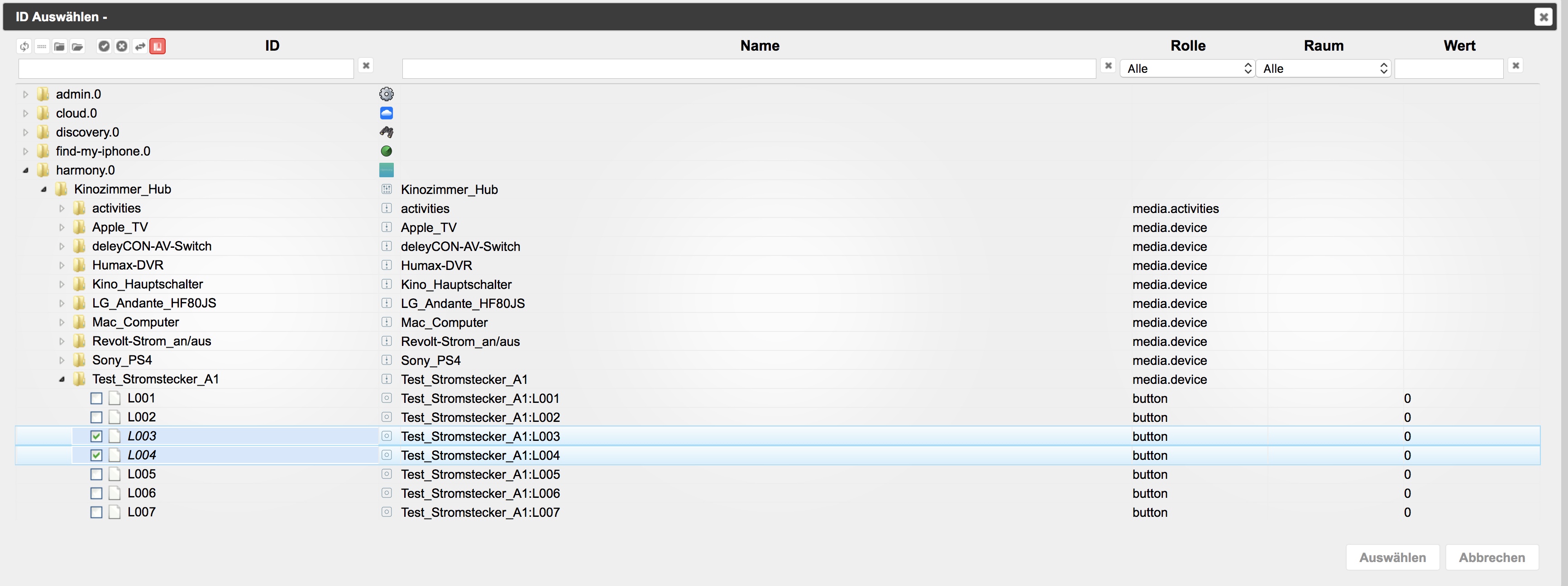 habe in der Harmony Software mittels JB Media Light Manager Mini eine Funksteckdose eingerichtet die sich ein/aus Schalten lässt.