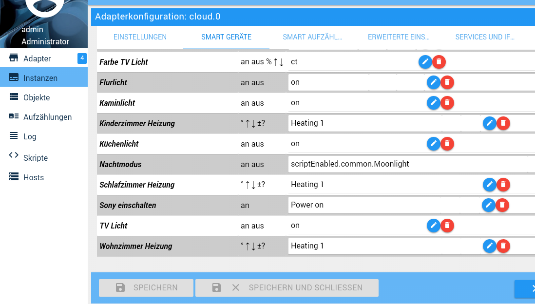Schon kannst du aus iobroker heraus deine Geräte steuern.