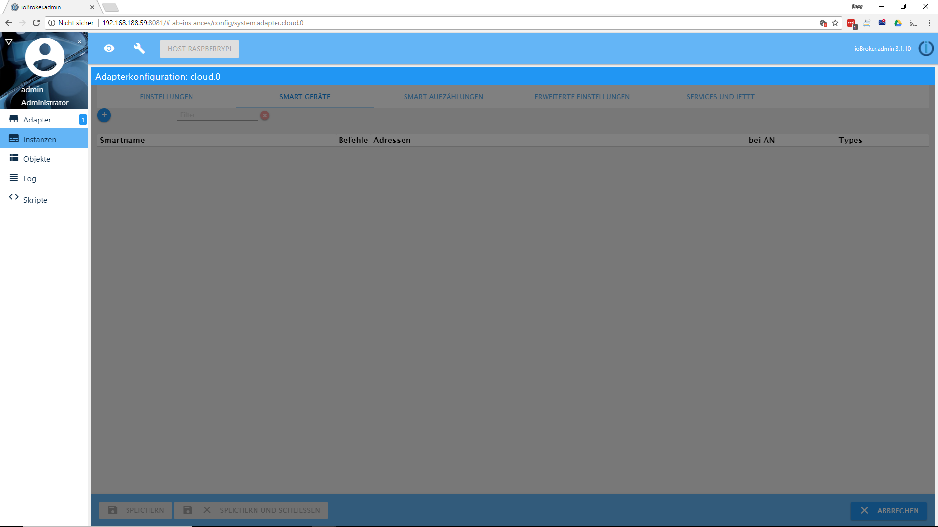 Es wurden bei mir noch keine Geräte im Cloud-Adapter angezeigt.