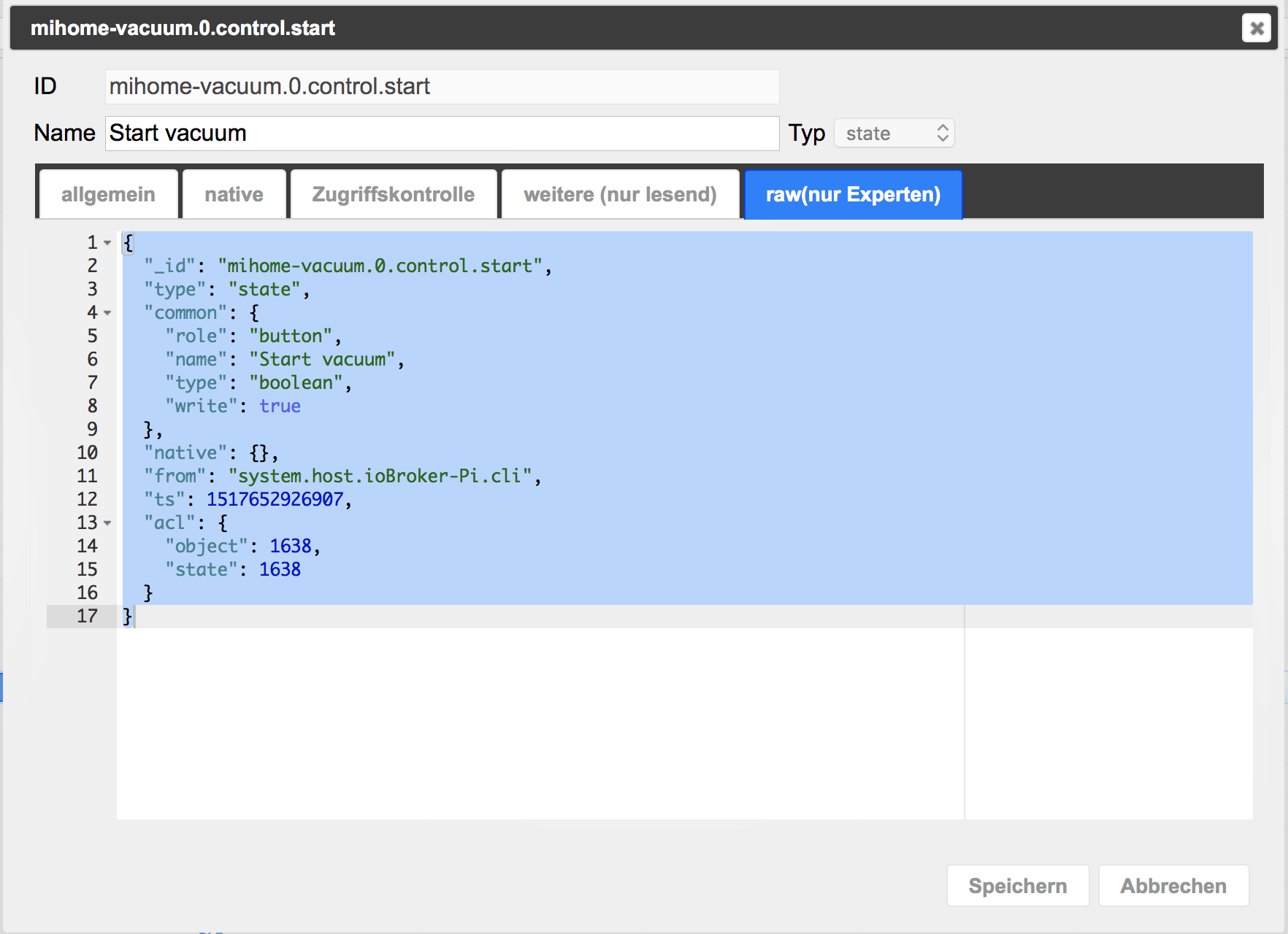 das hinzufügen vom Xiaomi Vacuum z.B. Start befehl funktioniert nicht.