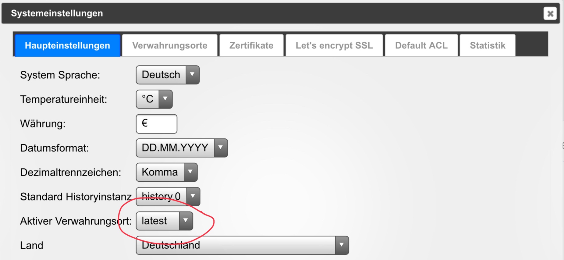 In "Verwahrungsorte" bin ich nun drin. Kann hier aber keine diesbezüglichen Einstellungen finden.