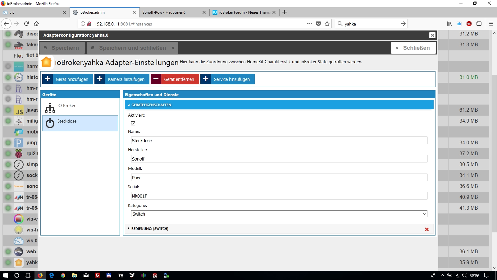Ich wollte es etwas übersichtlicher und habe in den MQTT Einstellungen des Sonoff die Client-ID geändert. Dann hat der Sonoff Adapter ihn neu angelegt und ich habe die States im Yahka Adapter angepasst. Sonst habe ich nichts geändert, aber es funtioniert.