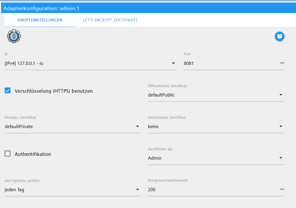 4. IoBroker Pro - Adminoberfläche freigeben