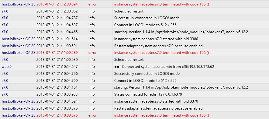 Saß heisst Logocontrol und iobroker kämpfen um die Verbindung zu den Logos.