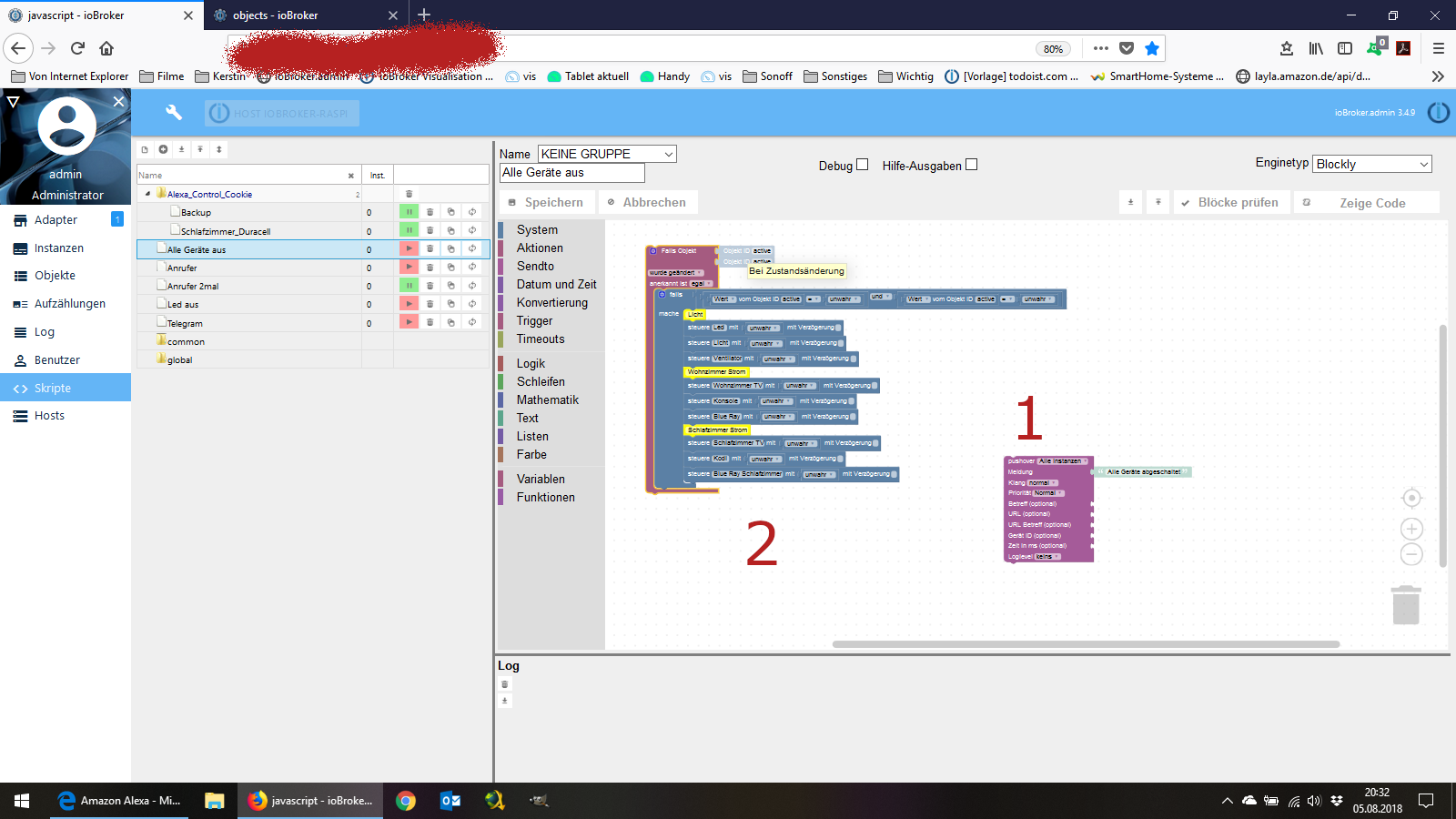 habe ein Blockly Script fertig was funktioniert und zwar wenn meine Frau und ich nicht zuhause sind sollen die Geräte abschalten. Ist einer doch noch zuhause und der andere nicht bleiben die Geräte an.