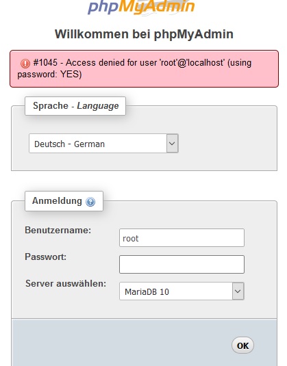 Mit User: root und ohne Passwort, wie in der Anleitung, kann ich Maria DB nicht öffnen.