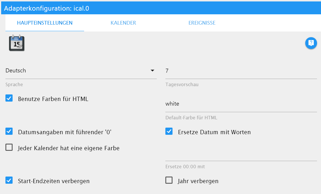 Jetzt würde ich gern in meiner VIS einen Kalender nutzen und in versch. Sparten beispielsweise