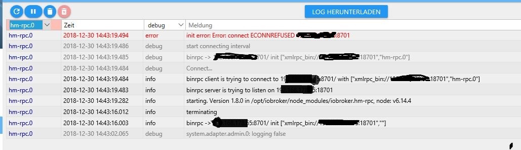 seit neustem ist bei meinem iobroker der Adapter für hm-rpc.1 und hm-rpc.2 gelb. hm-rpc.3 is grün.