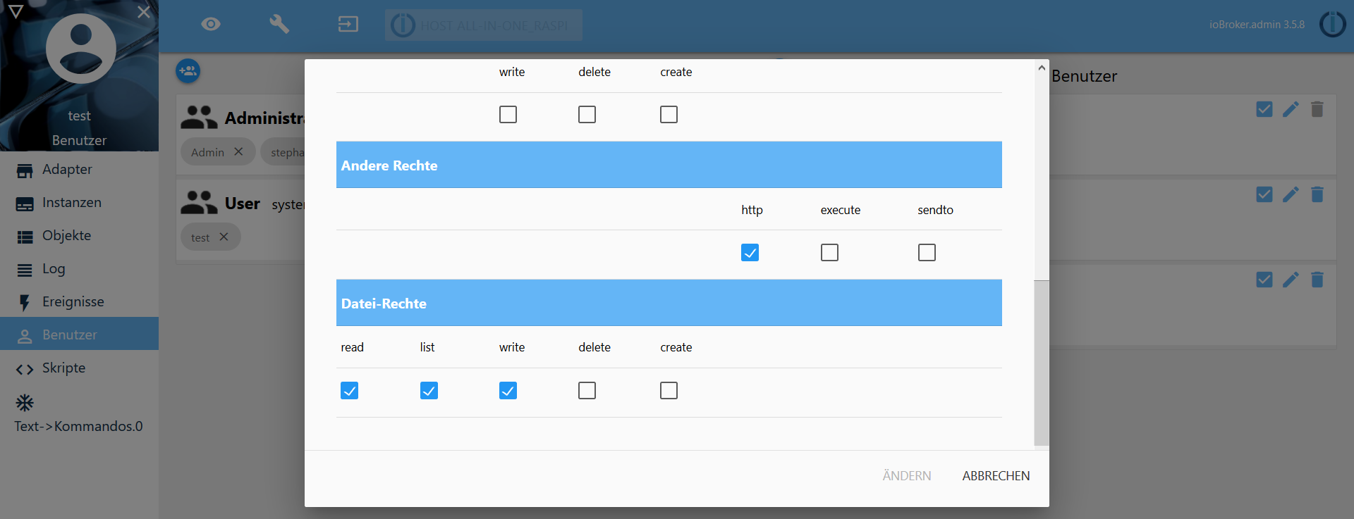 Das ist mein Verständnis des Rechte Systems in iobroker.