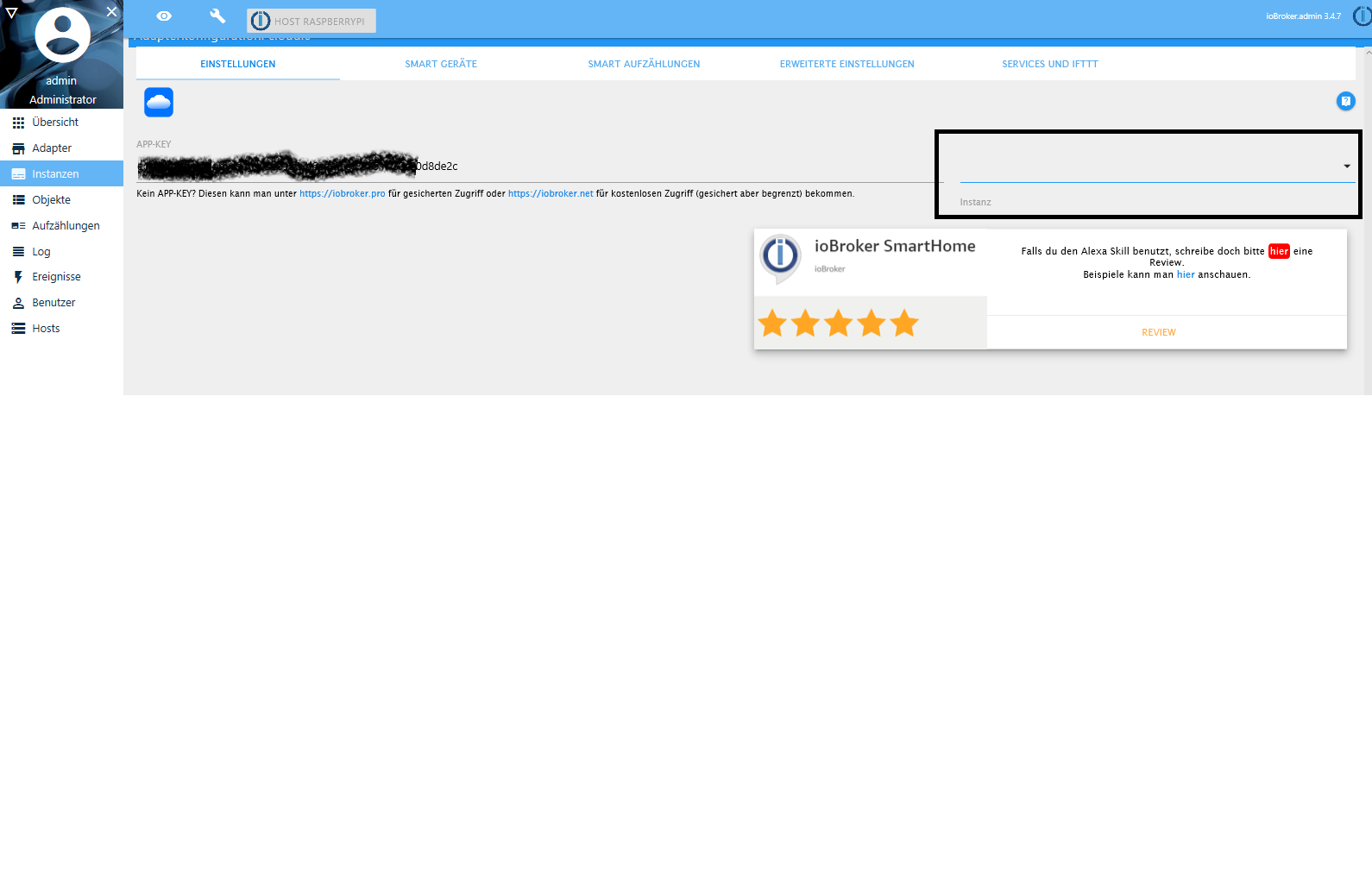 Ich will die Cloud Instanz in Verbindung mit Alexa benutzen.