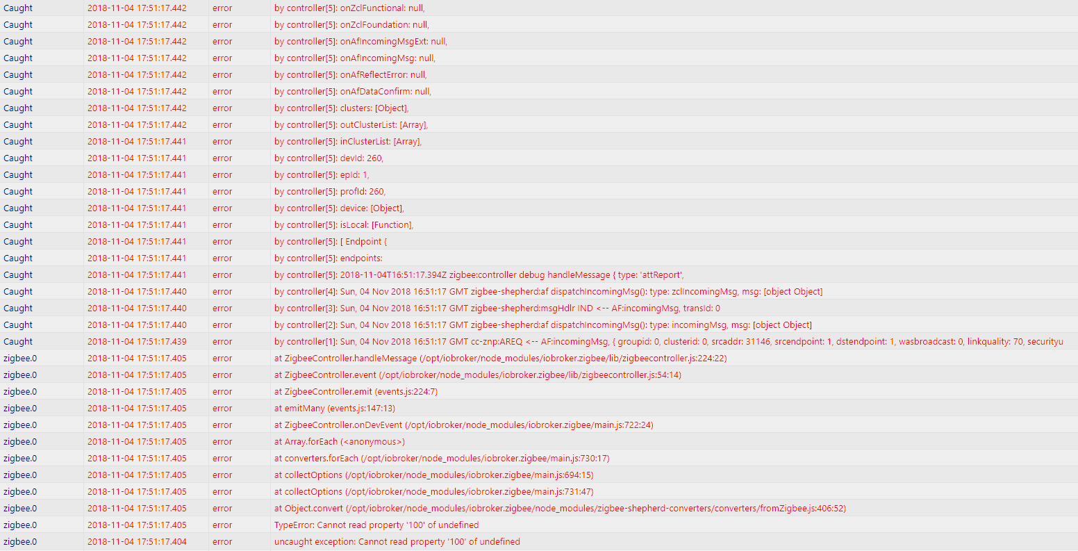 [gelöst] Zigbee Adapter Fehler, ca jede Stunde einmal