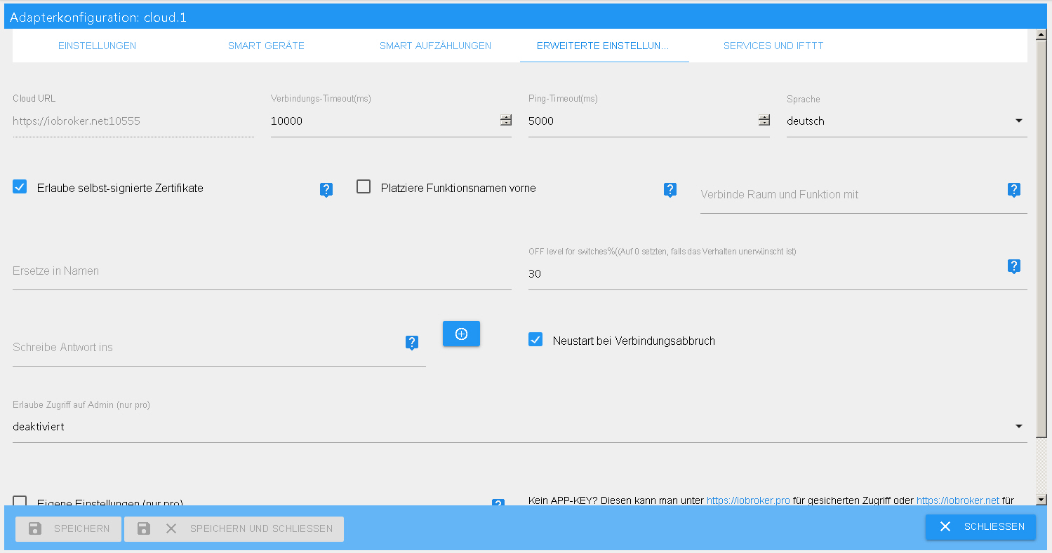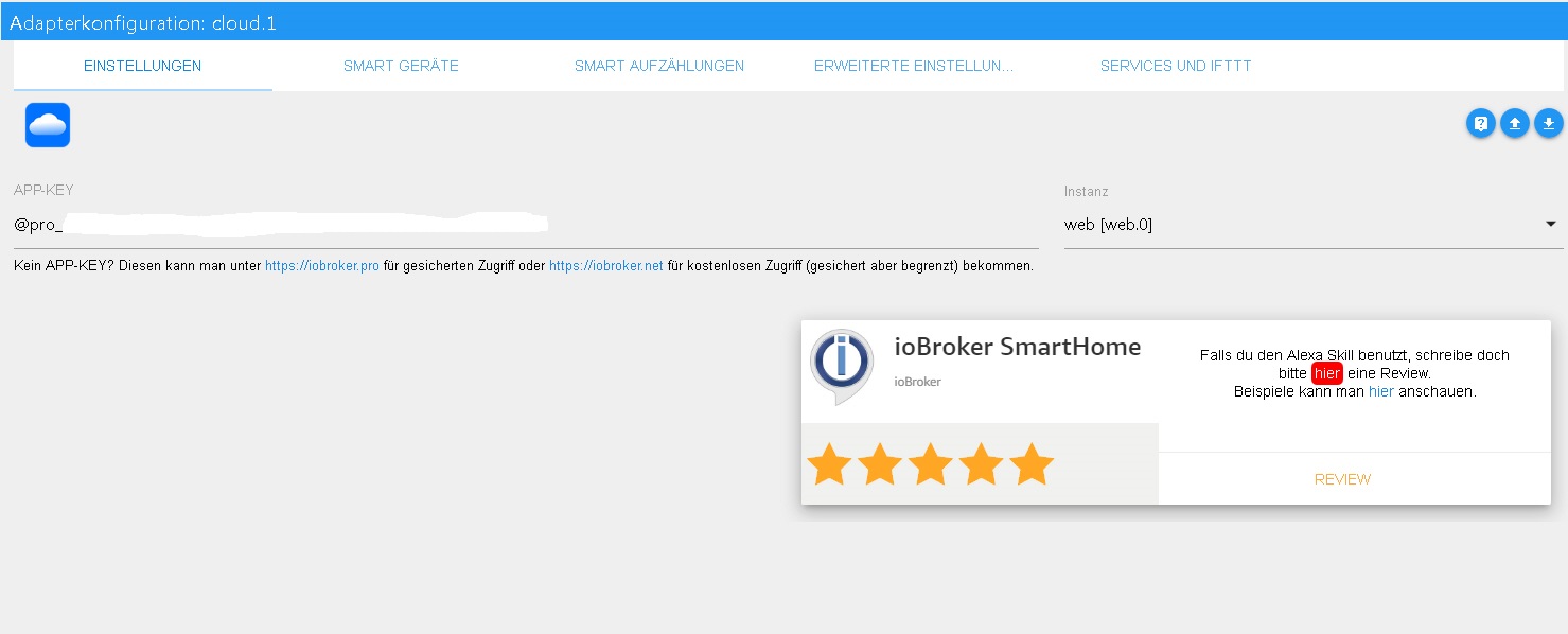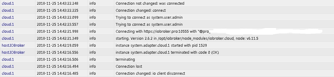 Also Sicherung erstellt alles nochmal runter und nochmal drauf, nebenbei den IOBroker aufn Raspi 3 umgezogen. Cloud Pro geht immer noch net und Free geht…... ich bekomms net hin