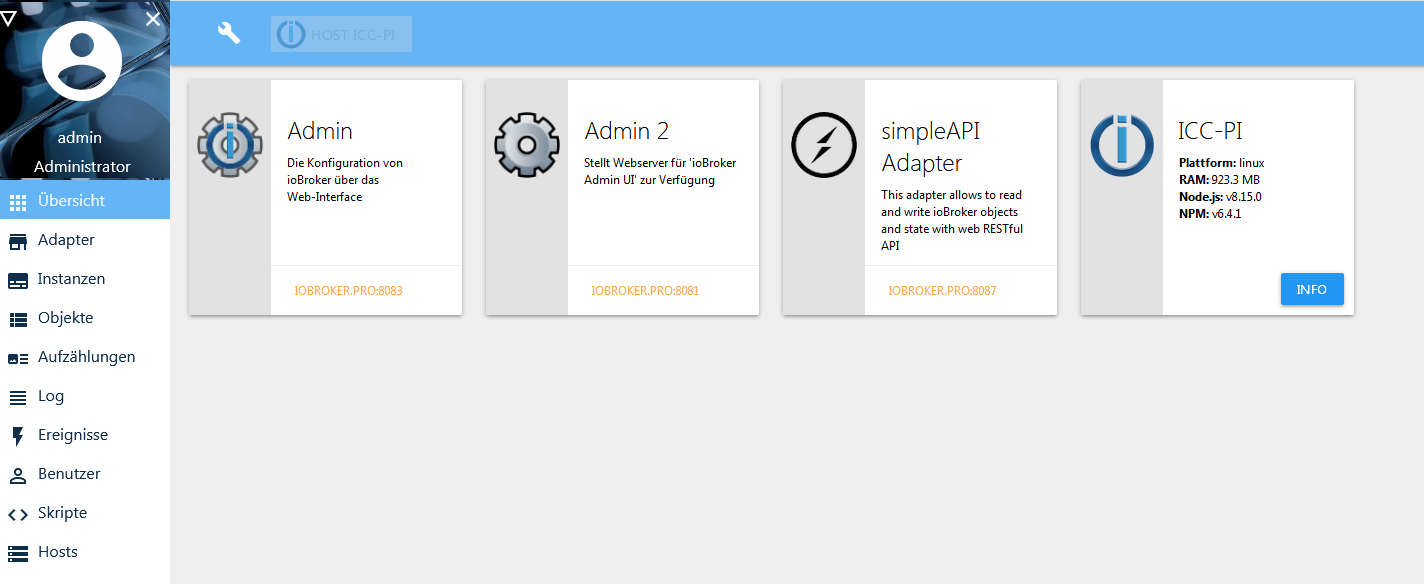 da es weder mit admin noch mit admin2 (unterschiedliche Ports) geht, schließe ich den adapter an sich schon al aus… JS-Controller?