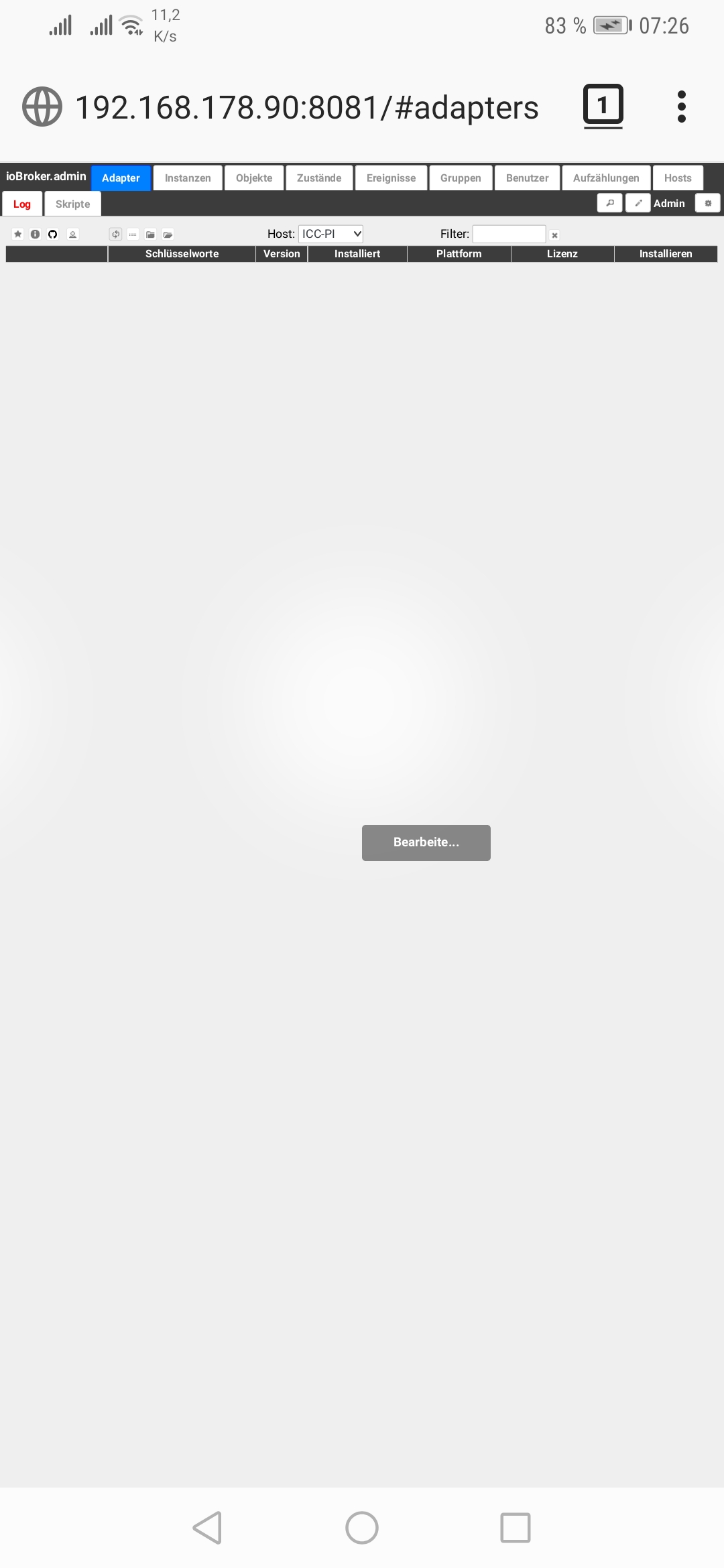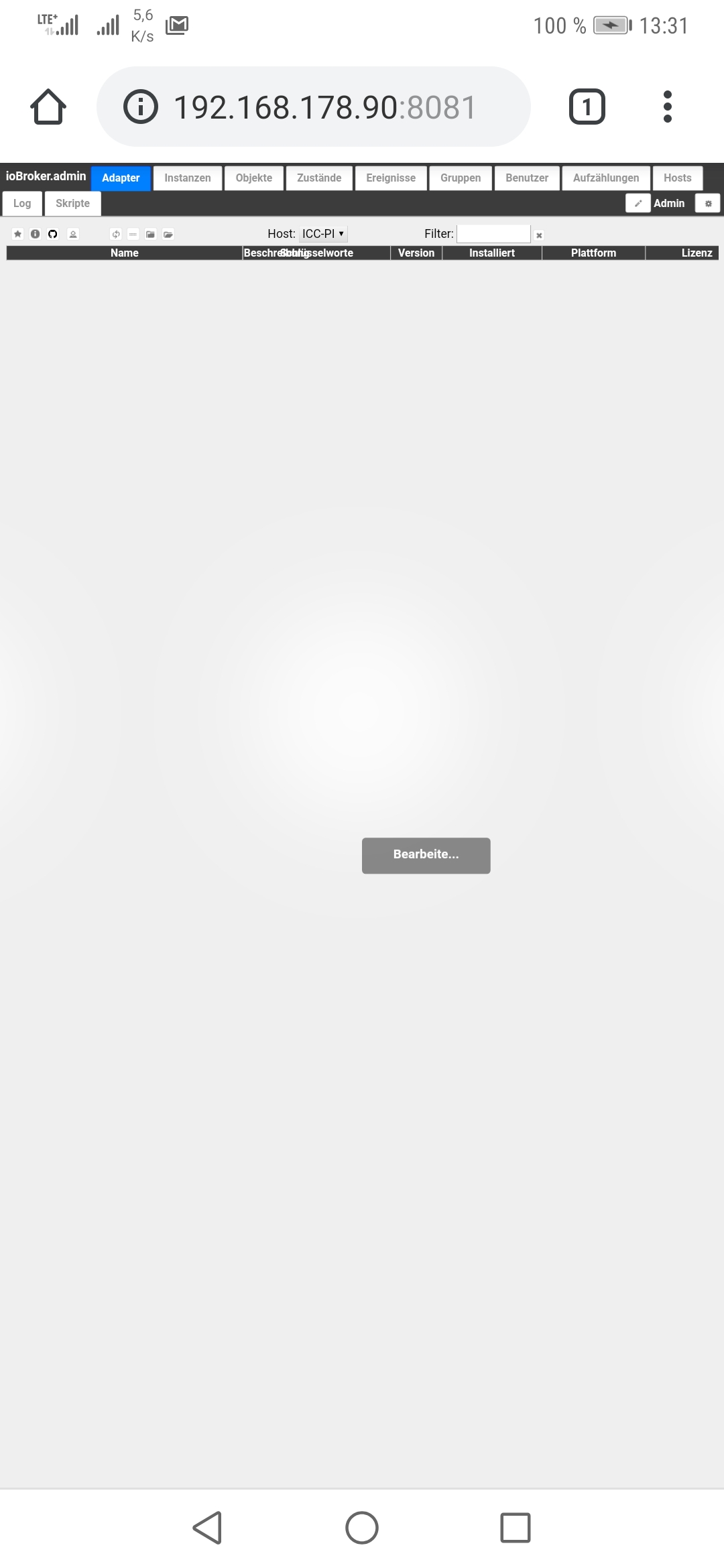 Reiter Adapter Iobroker zeigt nur lade Symbol an