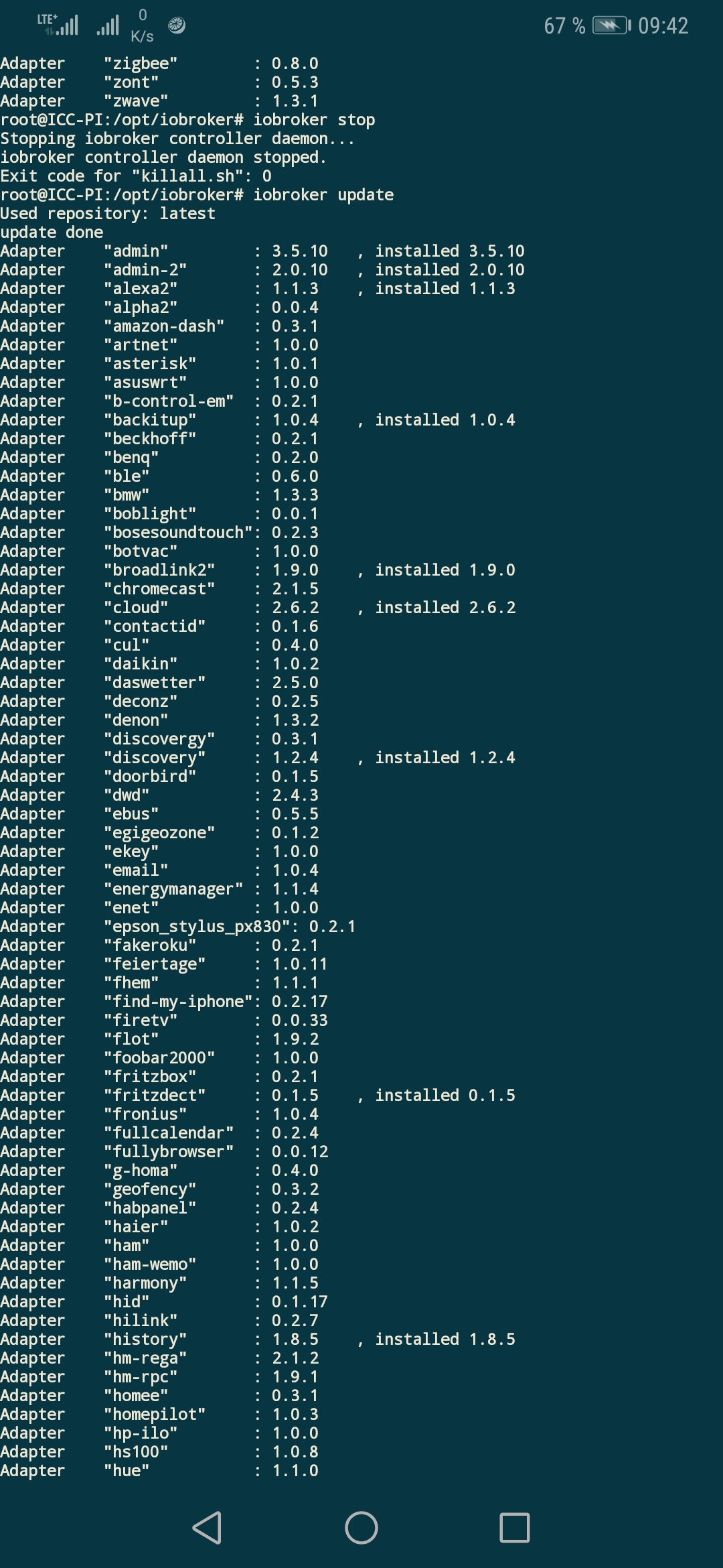 So habe mal ein Update aller Adapter und iobroker self gemacht scheint alles aktuell zu sein siehe Anhang