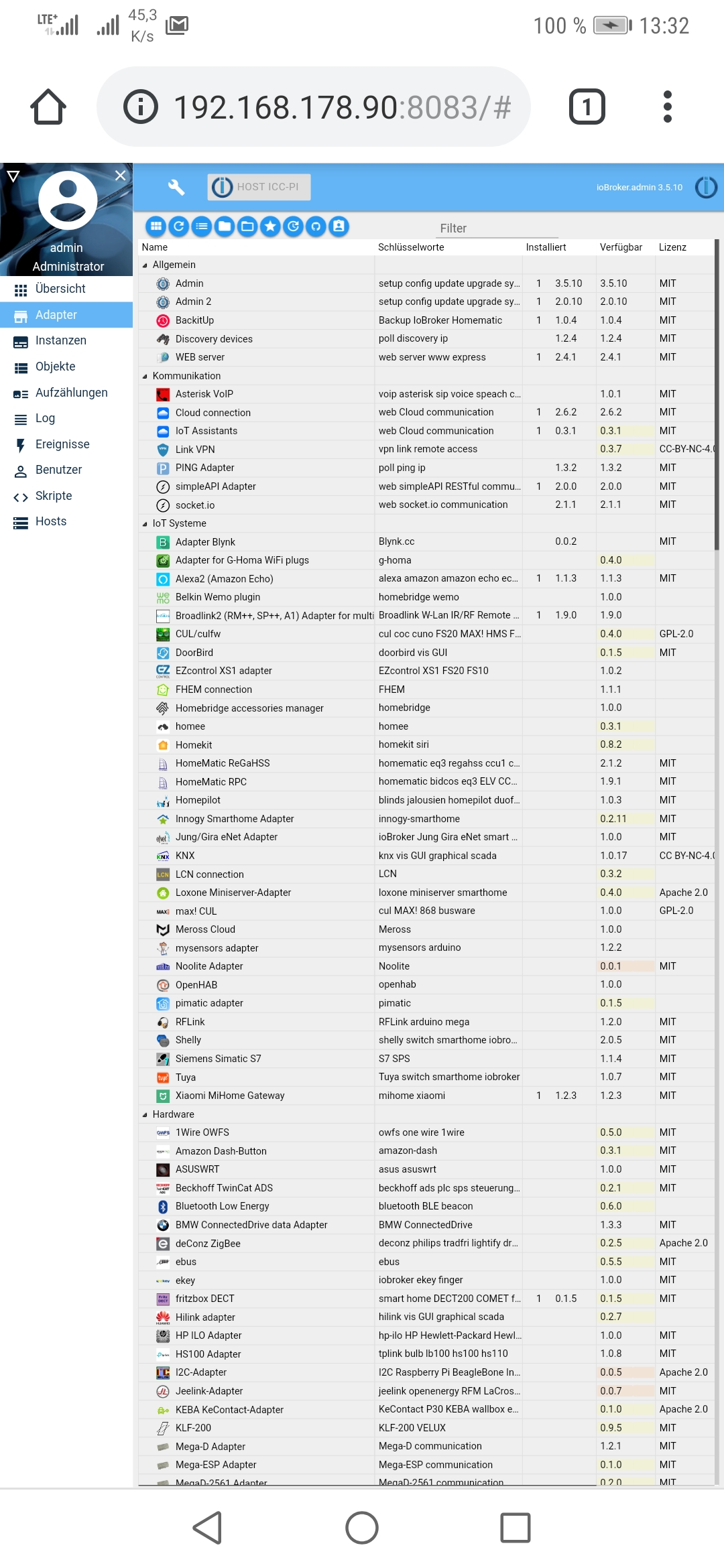 Der Adapter java script? wenn ja dabei : 4.0.7