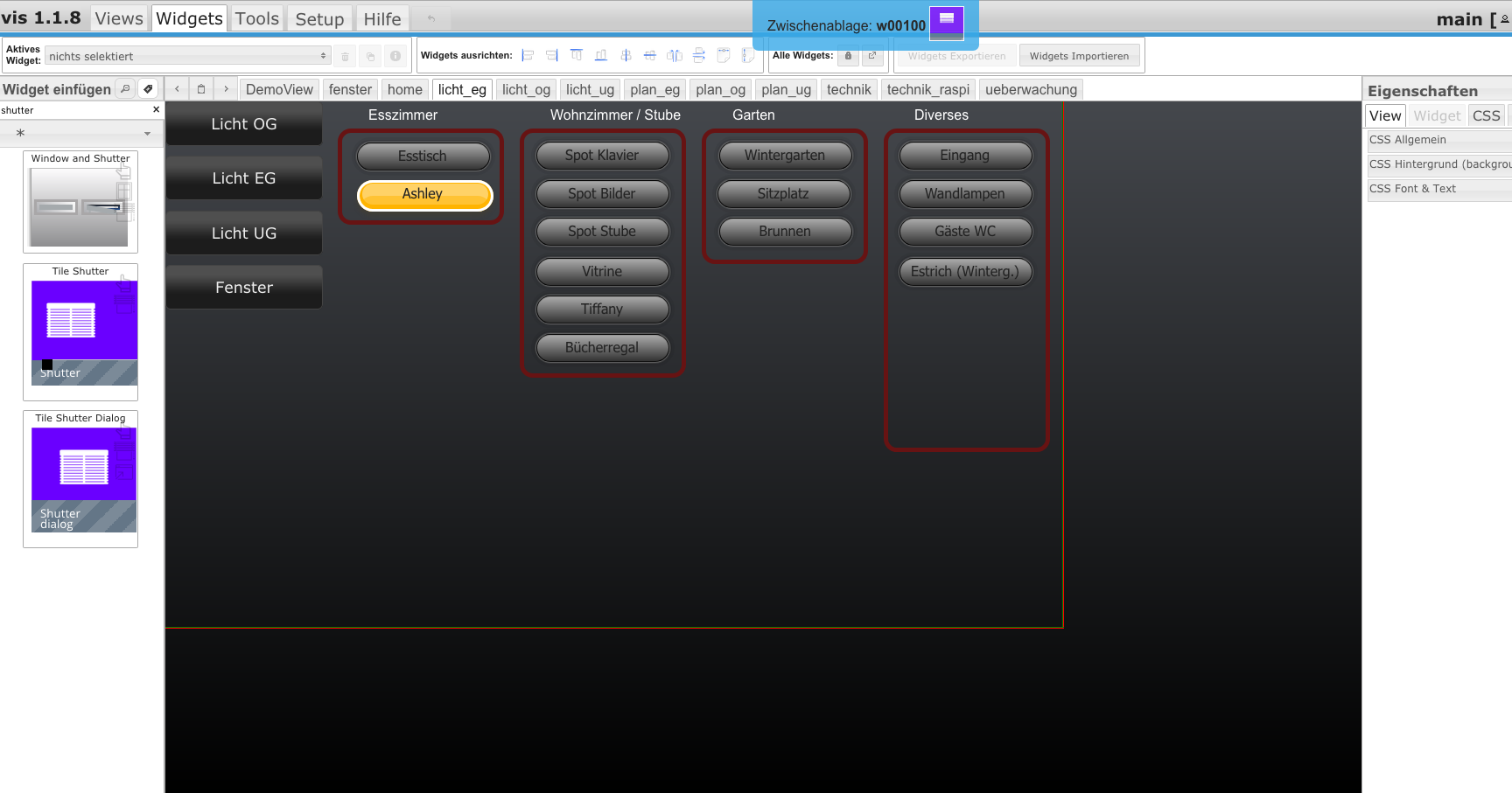 Komisch ist auch, ich kann ein Widget oder eine Gruppe von Widgets kopieren aber plötzlich nicht mehr einfügen.