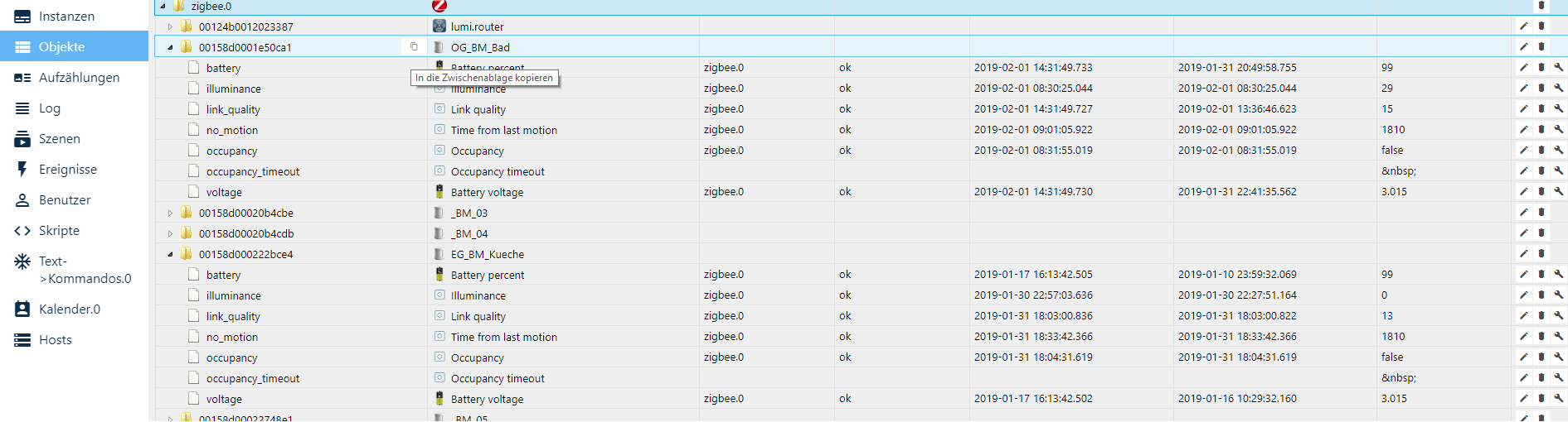 Nun hatte ich im laufe der Zeit ca. 2 Dutzend Sensoren gepairt.