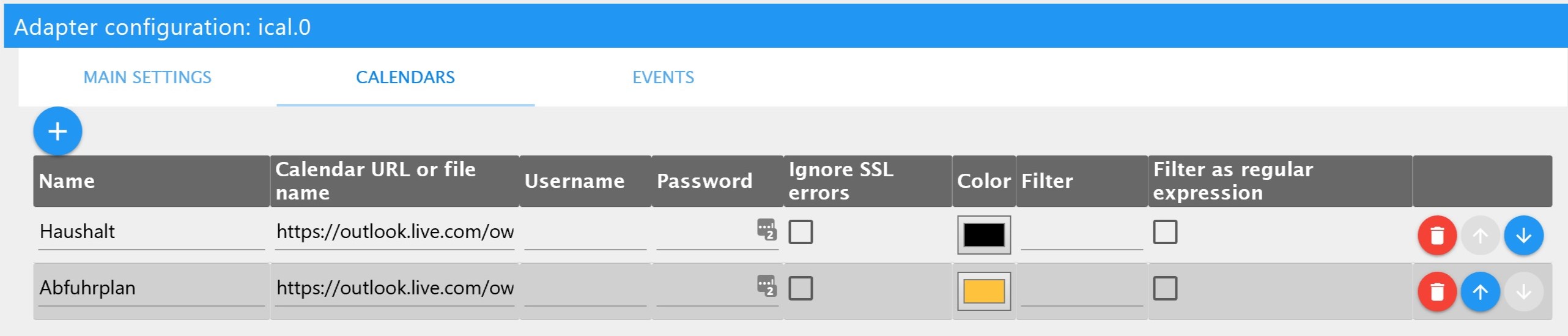 Hi, ich habe 2 ics Kalender in meinem ical Adapter hinzugefügt, aber bei jedem Durchlauf wird nur jeweils von einem die Ereignisse in die Variablen geschrieben. Dabei ist es scheinbar Zufall, von welchem die Ereignisse kommen, mal vom Einen, mal vom Anderen.