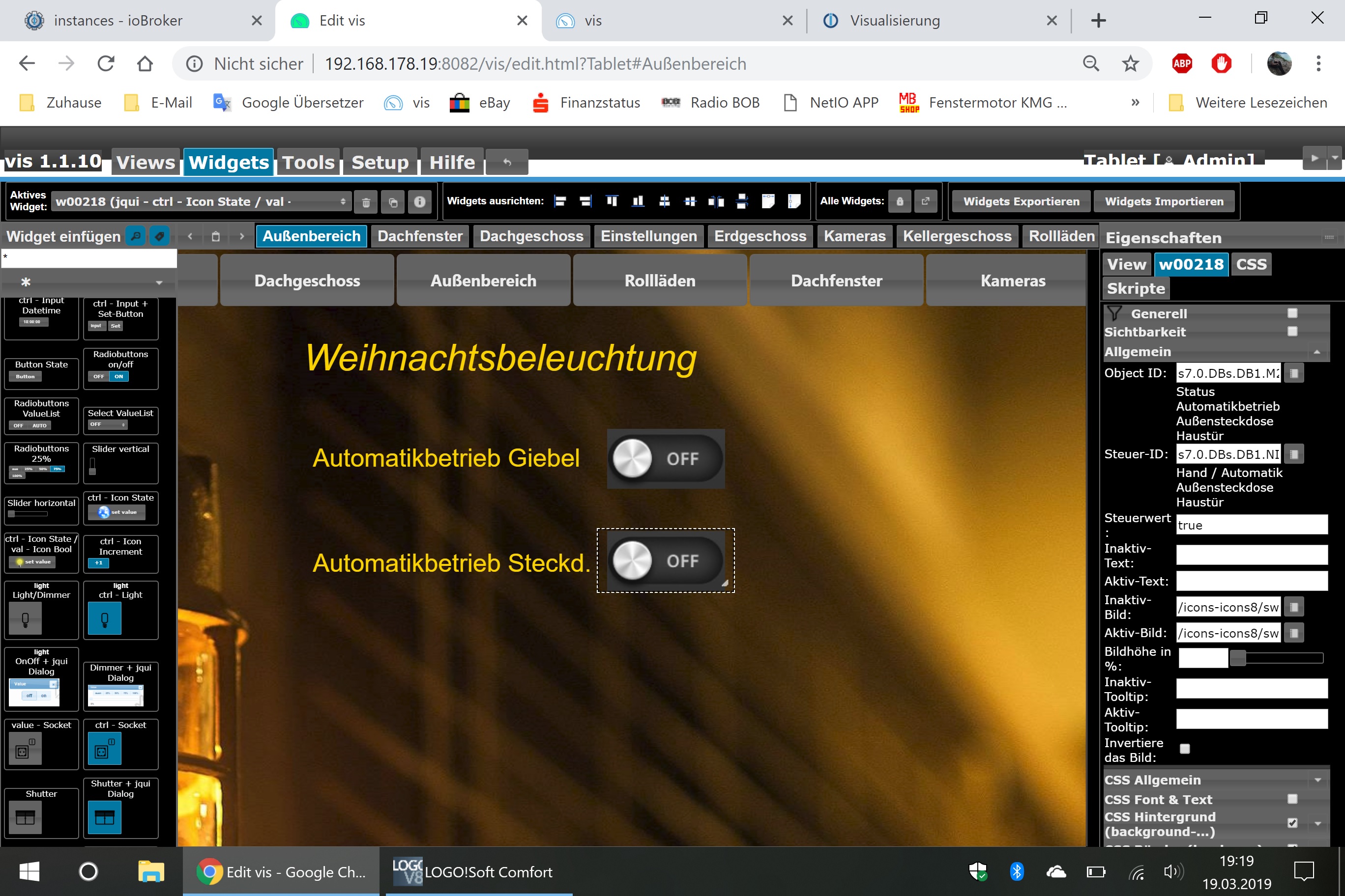 Das Widget ist eigentlich total Klasse, eigentlich genau das richtige für Leute die ihre SPS / LOGO8 mit ioBroker smart machen möchten weil man die Steuer und Status ID separat einstellen kann usw.....