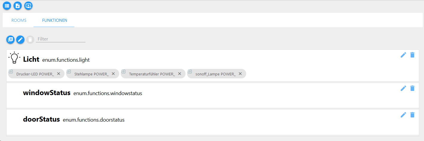 Ich habe unter AUFZÄHLUNGEN eine neue Aufzählung angelegt : "enum.functions.light"