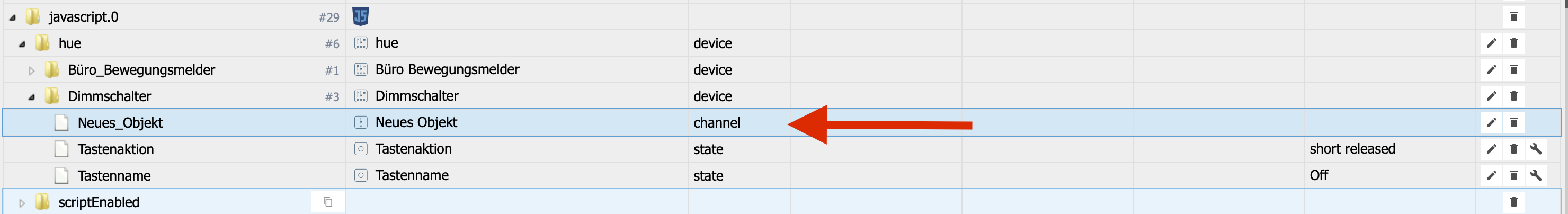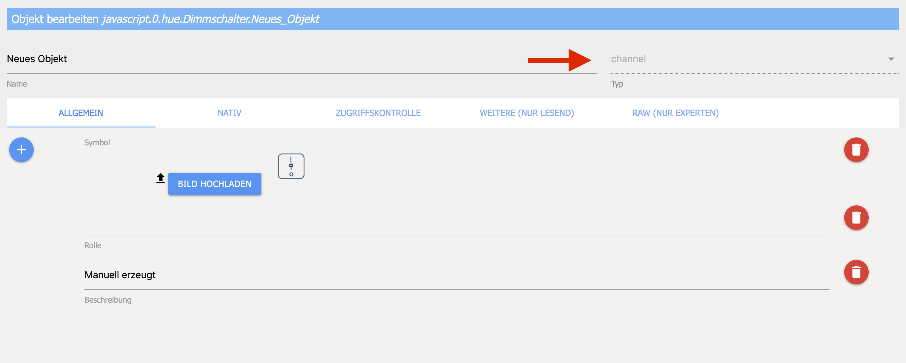 Wenn ich einen neuen Datenpunkt unter javascript.0 anlege, habe ich plötzlich keine Möglichkeit mehr den Typ "state" anzulegen. Es wird immer ein Typ channel.