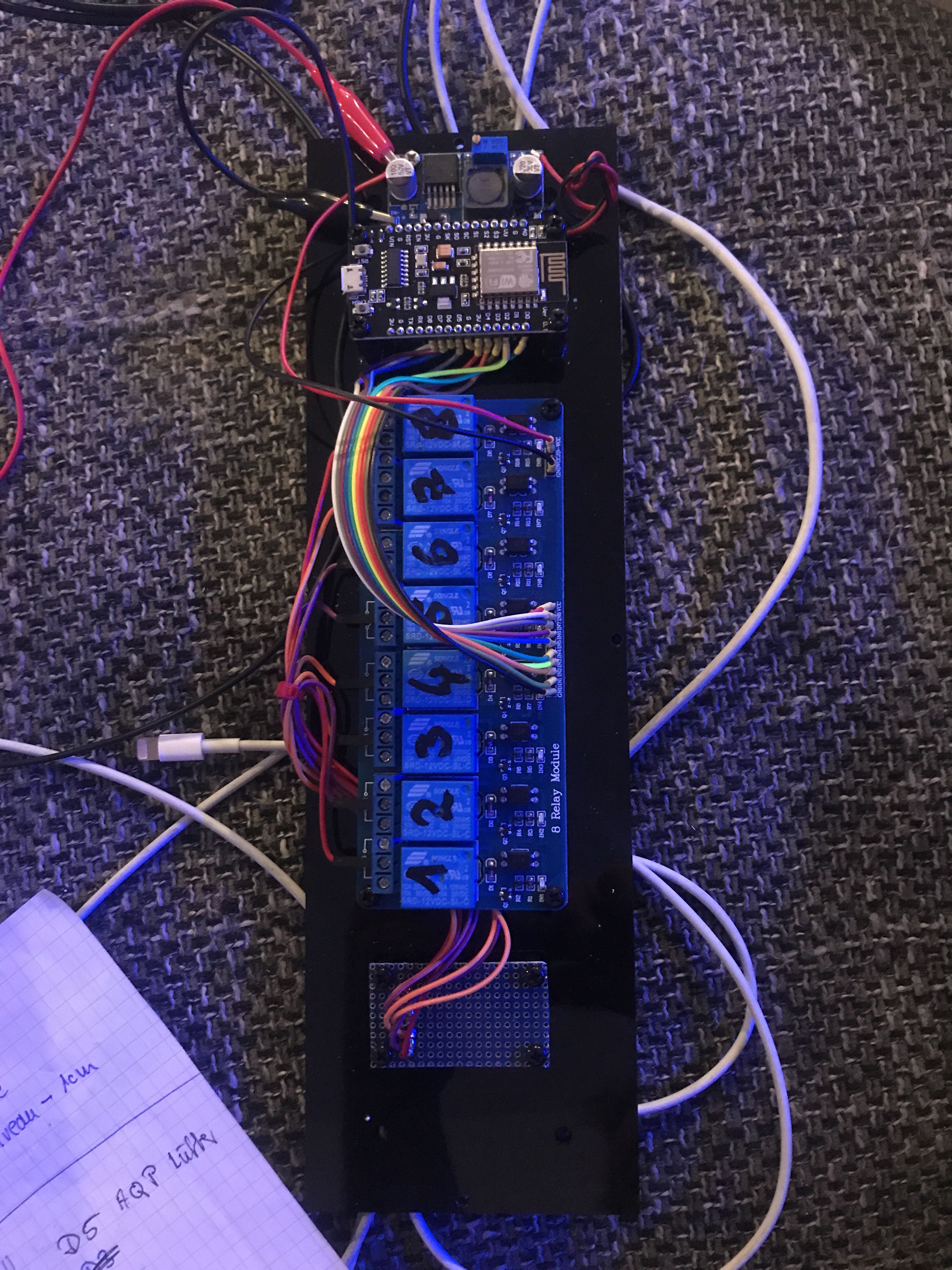 über eine 8fach Relais Karte. -