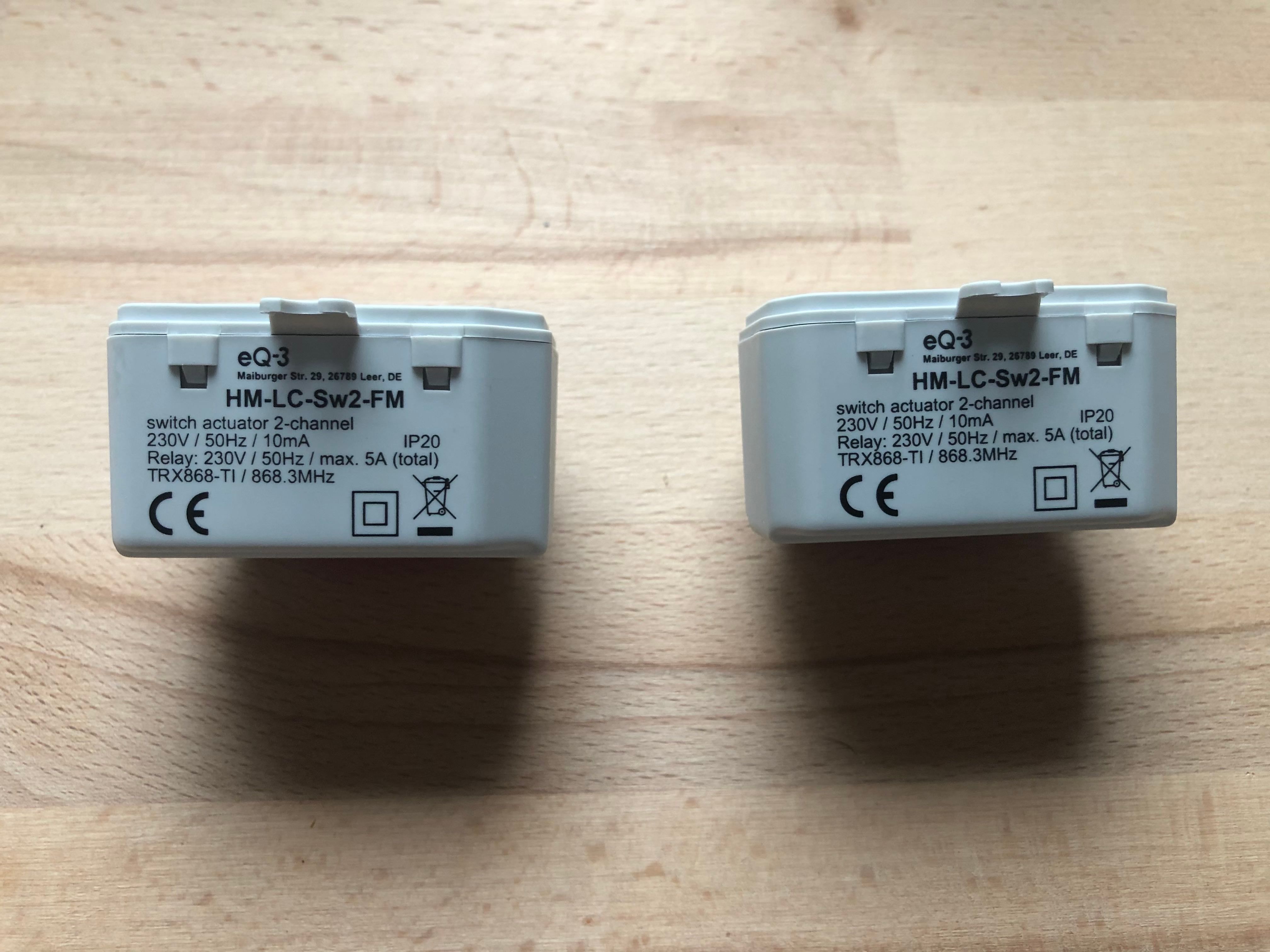 2x HM-LC-Sw2-FM 2fach Unterputz-Schaltaktor, gekauft im August 2018 je 45,-€