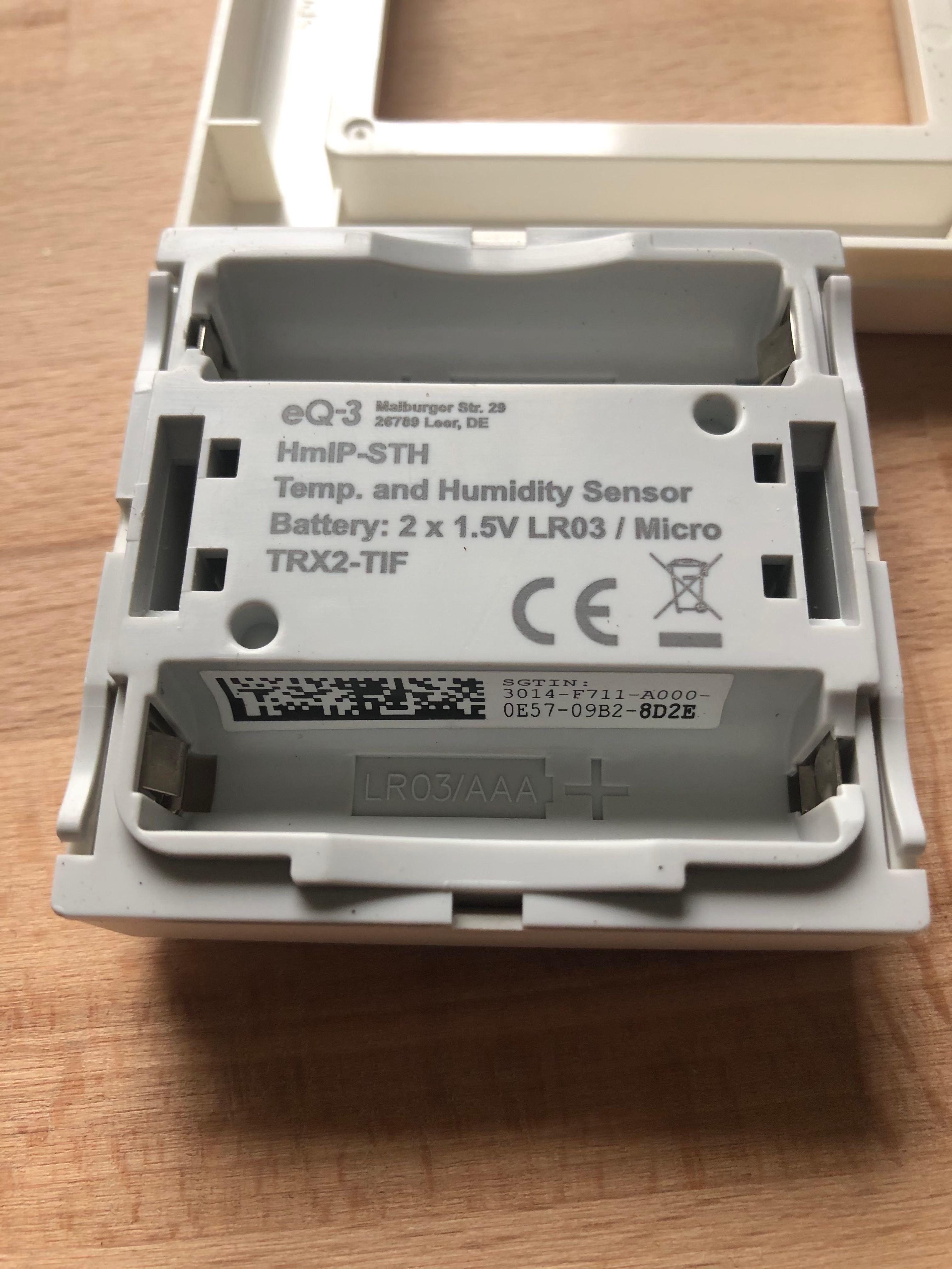 1x HmIP-STH Temperatur- u. Feuchtigkeitssensor, gekauft im Juli 2018 für 20,-€