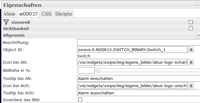 Ich habe in VIS einen funktionierenden Taster (siehe Screenshot), welcher mithilfe des FIBARO Smart Implant (FGBS222) meine Alarmanlage schärft bzw. entschärft. Nun möchte ich in Blockly, in Abhängigkeit eines anderen Schalters, die Alarmanlage schärfen bzw. entschärfen. Genau das bekomme ich nicht auf die Reihe.