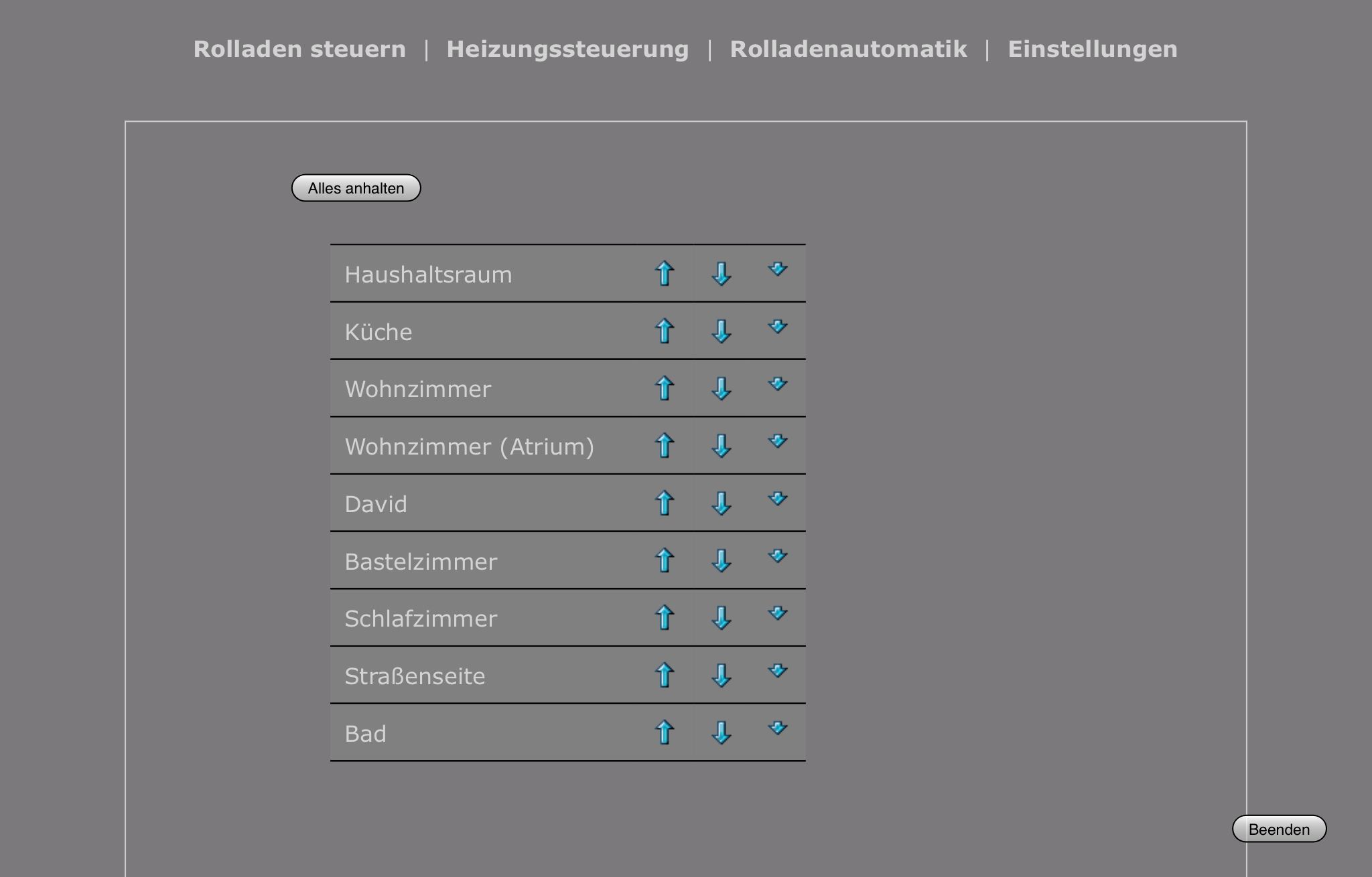 Direkte Steuerung der Rolläden, kleiner Pfeil = Sonnenschutz