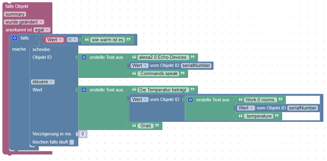 Da nicht alle Anfragen, die man so an Alexa stellt, von Ihr auch auf den Raum bezogen beantwortet werden (können), suche ich einen guten Weg "mein eigenes Ding" zu machen. ;)