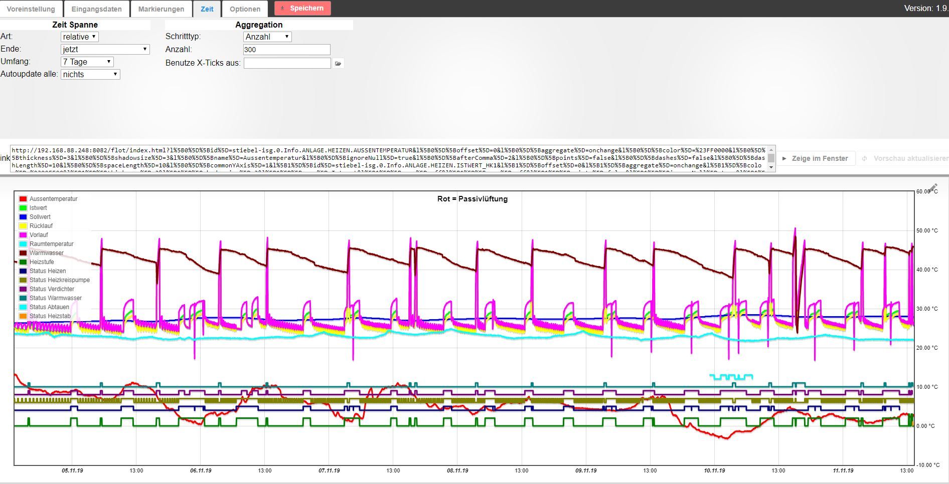 Gebe ich aber jetzt die Anzeige von Vorgestern, also von 09.11.2019 01:00 bis 10.11.2019 01:00 Uhr ein, dann kommen keine Daten:
