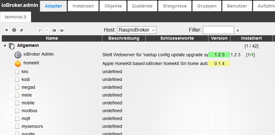 Das war es. Nun wurden nach einem kurzen Moment alle Adapter wieder richtig angezeigt. Die Instanzen gingen schon vorher.