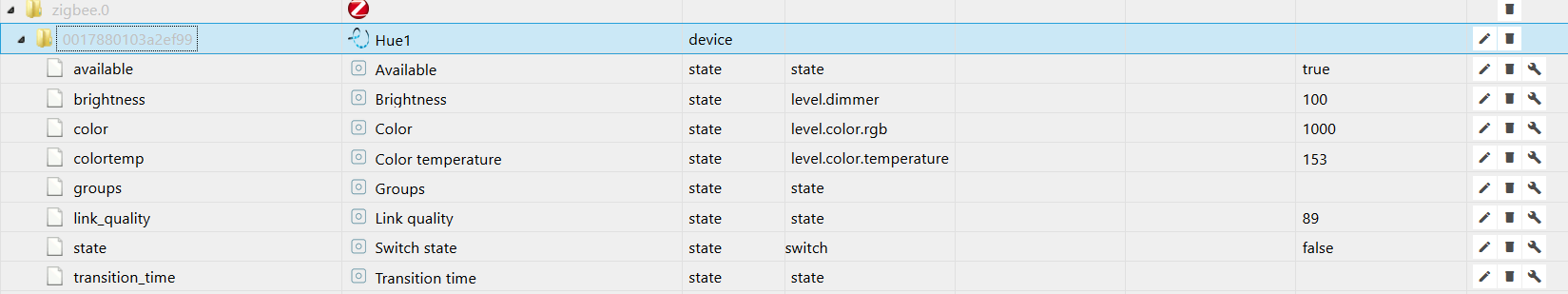 ich habe eine hue lightstrip plus via zigbee adapter in iobroker eingebunden.