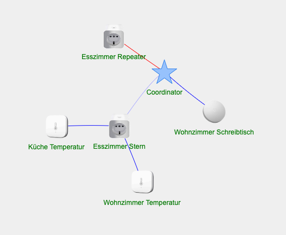 Nun wollte dachte ich, dass wenn ich den „Esszimmer Stern“ Plug entferne, sich die Geräte den nächsten Router suchen, aber die beiden Temperatursensoren bleiben offline, egal wie oft ich den Zigbee-Adapter Neustarte: