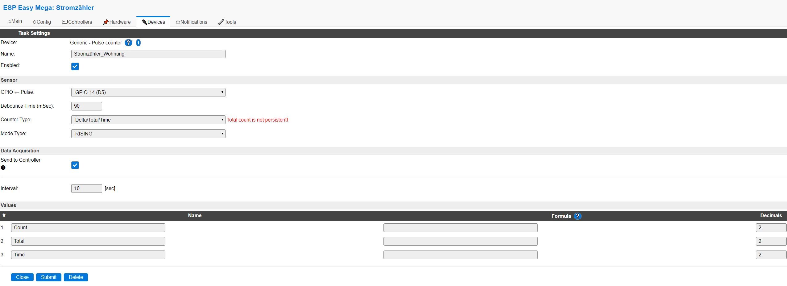 @Daniel1103 Versuche doch mal die Debounce Time höher zu setzen. Ich habe hier 150 ms eingestellt. Damit werden "Prellungen" eher abgefangen. Wie lange dauert bei dir ein Impuls des S0-Ausgangs? Sollte zumindest höher als dieser sein.