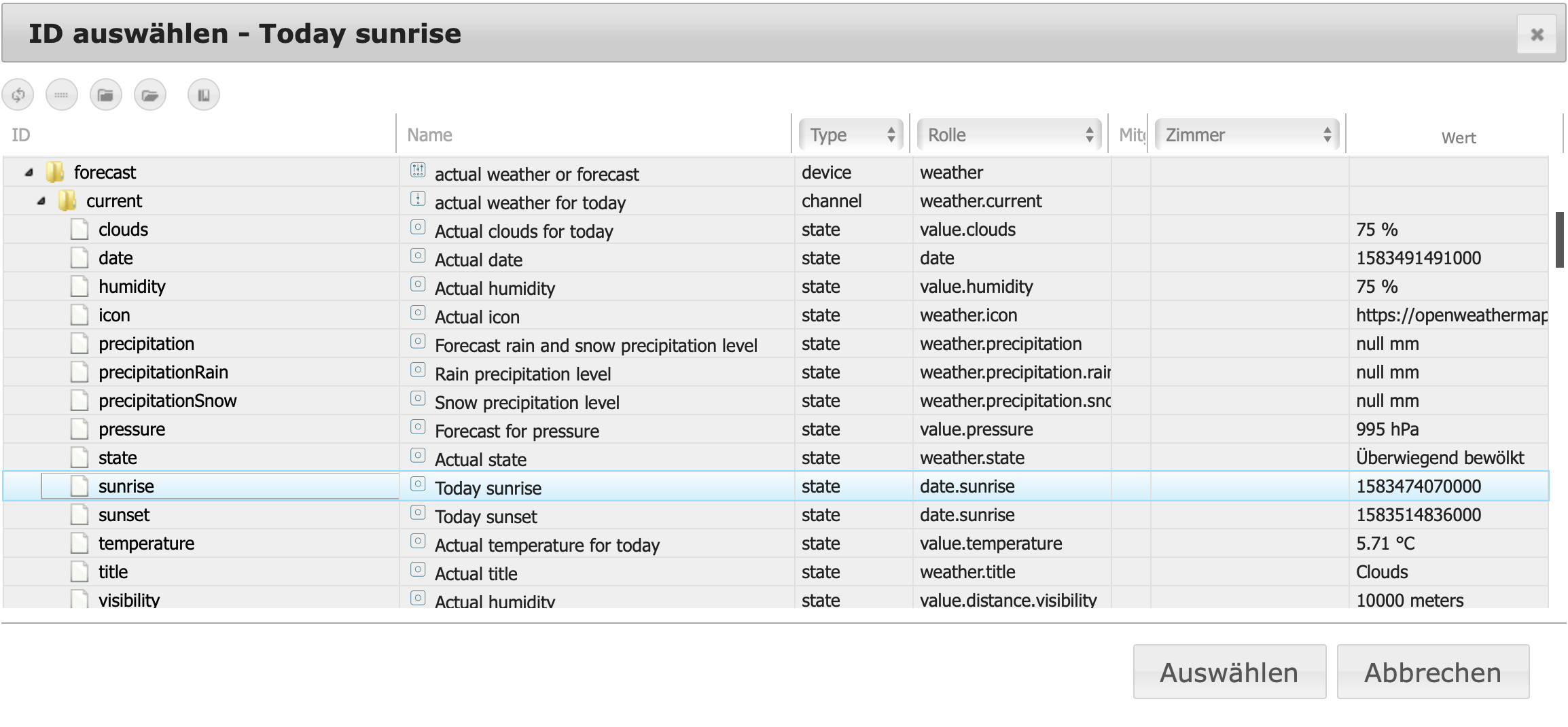 Der Datenpunkt hole ich mir vom Openweather Adapter :
